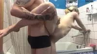 In the smoky confines of a dimly-lit bathroom, two passionate lovers writhe against each other with lust-filled fervor.The anticipation is palpable as their hands explore every inch of their eager flesh they've both been craving this moment for days now.As they begin their love-making journey in the bathroom, the scent of lavender from a nearby diffuser fills the air.Their hands travel along the curves and contours of each other, leaving no stone untouched as they yearn for closeness.He gazes into her eyes, a mix of hunger and affection swirling within his own, his breaths quickening as he lowers himself between her toned thighs.The sound of the running water in the background melts into a distant tune as they lose themselves to the world that is now only about their pleasure and satisfaction.As the passion escalates, she leans against the marble countertop, offering him her ass with a desire to explore a new realm of intimacy together.He hesitates for a moment, the smell of her excitement intoxicating him.However, with a deep breath, he finally gives in to their adventure and positions himself behind her.Their skin slides against each other, leaving goosebumps in their wake, and she can feel his cock nestle at the opening of her ass, begging to be invited inside.With a deep breath and an erotic groan, she pushes herself back onto him, feeling the throbbing tip slip inside, sealing their bodies together with a sizzle of carnal desire.As he fills her with each powerful thrust, her head tilts back in ecstasy as her eyes meet his from across her body.Her hands find her clit, and she begins to rub herself with a passion that matches the intensity of their fucking.She knows that every second brings them closer to climax, and the anticipation only adds to the ferocity of their lovemaking.With each thrust, he struggles to maintain control over himself, but it's her insistence and encouragement that pushes him past his limits.His body convulses as the first wave of cum surges forth from his balls, splashing across her ass with fun.He can feel his cock pulsating with every spurt, filling her completely until the last drop has been spent.As they catch their breaths amidst the afterglow, the woman takes a moment to appreciate the intimate and intense connection she shares with this man - a connection that only seems to grow stronger with each adventure.It's in moments like these, when the world outside dissolves into nothingness, where true passion and love come alive.