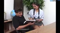 The slutty student was always a wild one, constantly seeking ways to push her boundaries and explore the pleasures of her newfound freedom.Her braids shook with excitement as she entered the office, knowing that today would be an unforgettable day filled with lust and desire.Her tight outfit accentuated her curves and showed off her perky tits and round ass, making it clear to any passerby that this was a girl who loved the attention of others.She slowly walked up to her coworkers desk, her eyes never leaving his.She could sense the hunger in him it radiated from every pore and seeped through his skin like an invisible forcefield.This was what she desired the most a raw, primal connection that would send shivers down her spine and leave her panting for more.She began by giving him the blowjob of a lifetime, her hands working in tandem with her mouth to pleasure him in ways no one else ever had.She took his dick into her wet and willing throat, deepthroating him as she looked up at him with her slutty eyes.She knew it would drive him wild, so she didnt hold back.Her lips and tongue worked together to bring him to the edge of climax before stopping just short teasing him mercilessly.As she continued to blow him, he could feel his control slipping away, replaced by a wave of animalistic desire.He had been wanting this for so long, and now it was finally happening.The heat of her tongue and the suction of her lips pushed him closer and closer to the point of no return.Her pussy was already drenched with anticipation as she moved from giving the blowjob to bending over his desk.Her ass in the air, her juices trickled down her thighs, creating a slick puddle on the wood.He roughly entered her, pounding her hard from behind.The sound of flesh meeting flesh filled the room with the music of their passion.Each thrust drove them deeper into the abyss of their shared pleasure.They both knew this was what theyd been waiting for this primal connection where nothing else existed except for their lust and desire.Her body tensed as she felt him reaching for her clit, stroking it in time with his thrusts.The sensations overwhelmed her, and she could feel her climax building up inside of her.She moaned louder and louder, pushing past the threshold and releasing a wave of euphoria through her entire body.Their bodies convulsed together in perfect synchrony, their breaths heavy with exertion as they basked in the afterglow.The desk was covered in a mess of sweat, cum, and desire a testament to their animalistic connection.As she stood up, her eyes locked onto his one last time before leaving the office, both knowing that todays encounter would forever be etched into their minds.She walked away with a satisfied smile, feeling confident and proud of what she had done.Her heart raced in excitement, knowing that there would be more days like this to come.This was only the beginning the beginning of her wild ride into the world of raw, uninhibited pleasure and desire.