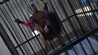 In a dimly lit room, two men stood before each other, both eager for what was about to unfold.They were adorned in their sexiest attire, one wearing a leather harness while the other sported a tight uniform.The anticipation grew as they locked eyes, the air thick with desire and excitement.Little did they know this was just the beginning of a night filled with kinky bondage play.The submissive lover began by kneeling at his partner's feet, his eyes fixated on the growing bulge in his pants.The dominant man, sensing the hunger for control, reached into a nearby cage and unlocked it.He pulled out a collar, which he carefully fastened around his lover's neck as an act of dominance.As this was happening, another slave, dressed in nothing but fishnet stockings and suspenders, entered the room, ready to satisfy their every desire.The dominant man ordered his obedient slaves to engage in various acts of roleplay.The first was a school punishment scenario they were tasked with tying each other to a net-covered swing, simulating being punished by authority.As they moved into this position, the two men began to kiss fervently, their passion reaching new heights as they fondled each other's firm bodies.Next, they explored more intimate positions.The dominant man took his slave's mouth upon him and reveled in the sensation of a skilled cunnilingus, while the other submitted himself for a powerful blowjob from the eagerly anticipating lover.The submissive slaves then switched roles, with one engaging in a slow and sensual oral interlude, while the other enjoyed the intense pleasures of an animalistic doggy-style position, complete with slapping and biting.The threesome explored a variety of sexually explicit positions, each more intense than the last.The dominant man used the collar to control his obedient lover, who was in constant search for satisfaction and domination.Throughout this whole ordeal, they remained clad in their uniforms and stockings - a testament to the erotic allure of the situation.Finally, as they reached the pinnacle, one slave rode his partner in an intense, ecstasy-inducing cowgirl position while the third performed an exhilarating oral act.The room was soon filled with a cacophony of gasps, moans, and sighs - a true testament to the intensity and passion of the men's encounter.As their night of submissive bondage play came to an end, they collapsed in a heap, breathless and spent, both basking in the afterglow of their newfound love for kinky and taboo sex acts.This night would remain etched in their minds as one of the most erotic and exhilarating experiences they had ever shared, thanks to the power dynamics and bondage play that brought them closer than ever before.